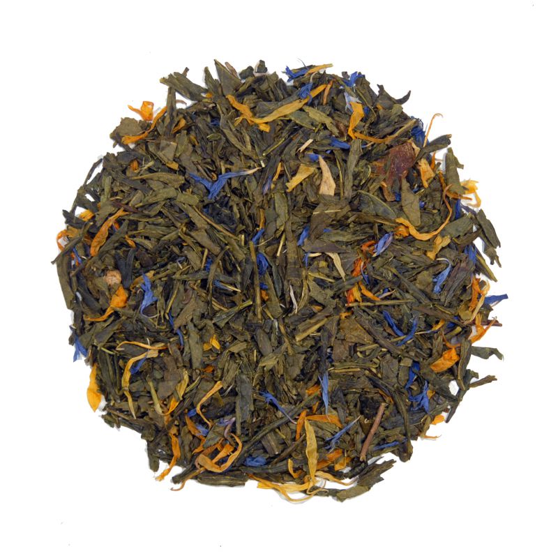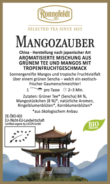Sonnengereifte Mangos und tropische Fruchtvielfalt über einem grünen Sencha – welch ein exotisch-frischer Gaumenschmeichler!